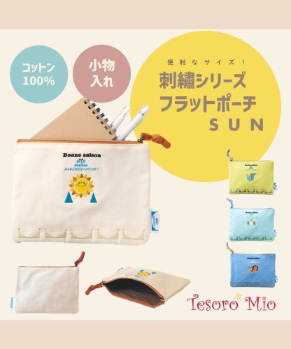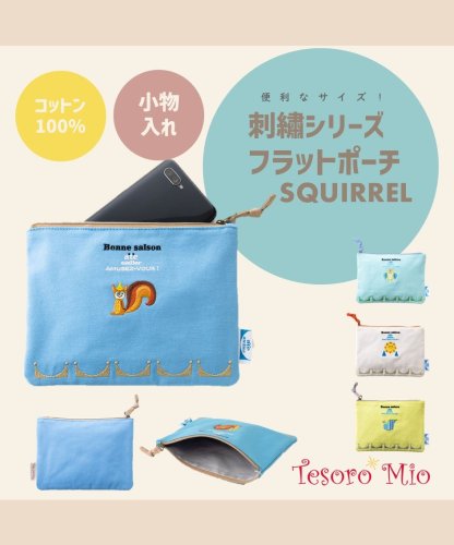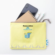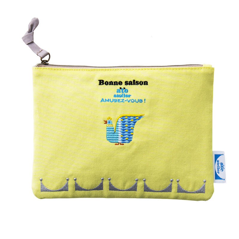 てづかあけみ?オリジナル書き下ろしキャラクターを刺繍で描いたこだわりのポーチ。まるで色鉛筆で描いたような風合いがあり、刺繍ならではの立体感がございます。